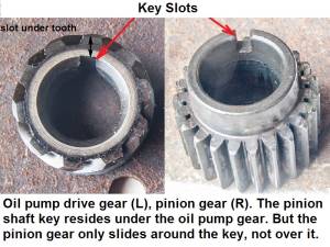 This causes the teeth of the steel oil pump drive gear to wear badly on one side.