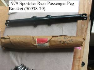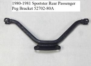 • 1980-1981 Sportsters: The passenger peg bracket changed back to a bent bar attached at the bottom rear motor mounts.
