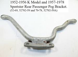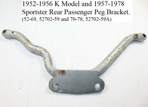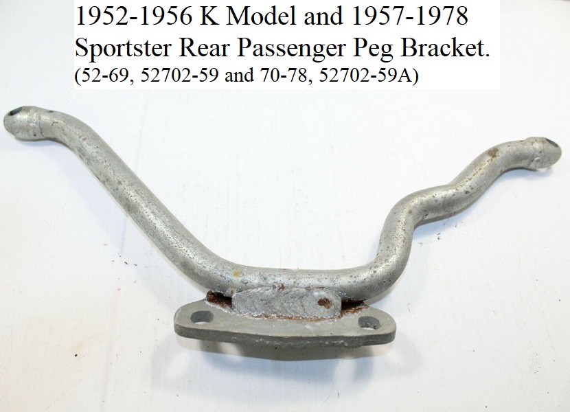 Early Sportsters used a round one piece metal bracket to mount the passenger pegs for use with the Buddy Seats.