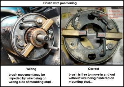 - Note this brush must be insulated from the brush plate, while the other brush is not as it is the negative part of the 12V circuit.