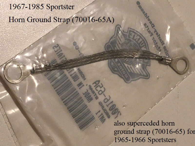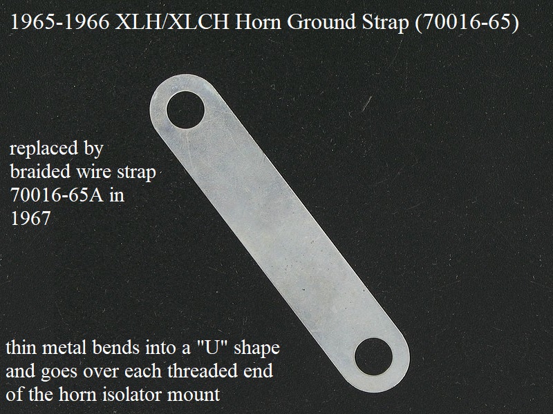 1965-1966 horns were originally grounded with a straight metal strap (70016-65) that was then bent in a “U” shape with holes on each end.