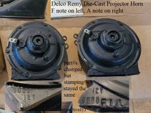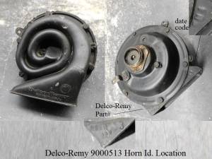 • The die-cast horns have a (Delco Remy) 7 digit part number stamped on the bottom left corner when facing the back (mounting side of the horn.
