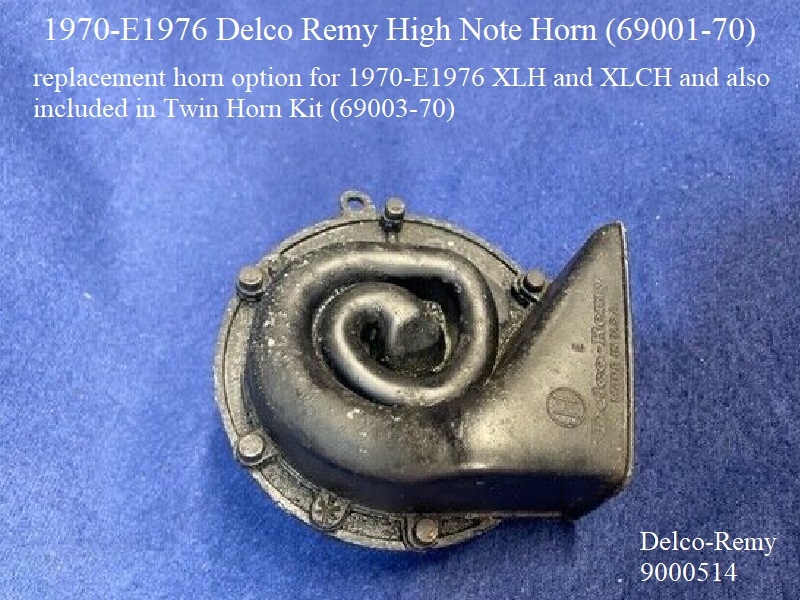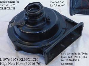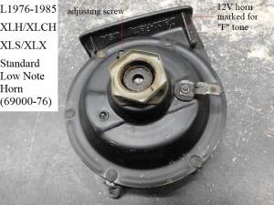 Delco-Remy (LO-tone, or F note) 9000 series horns (9000513) were factory installed on production Sportster models from 1965-1985.