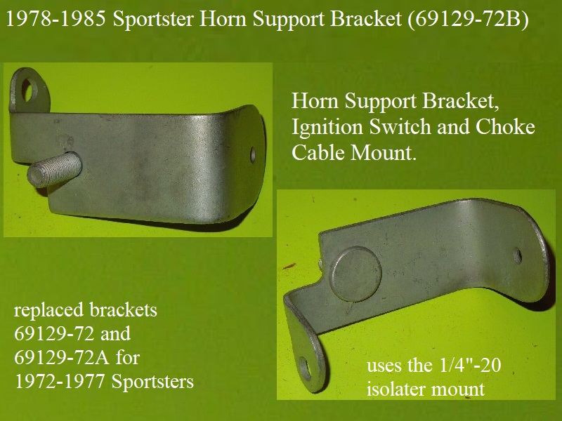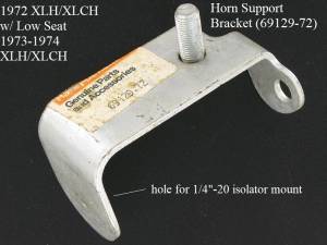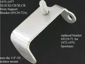1967-1972 XLH/XLCH models that were fitted with the standard seat used horn support bracket (69129-67). This bracket also supports the choke cable.