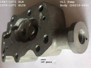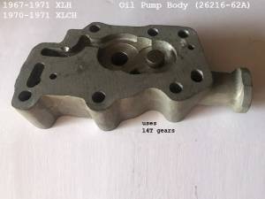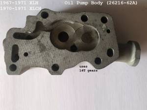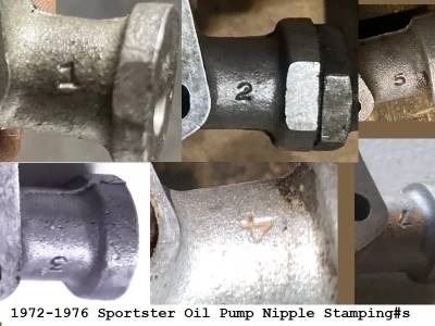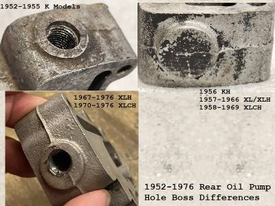 • 1967-1976 XLH and 1970-1976 XLCH deleted the top rear feed fitting and revised that cast shut hole for a feed oil re-route to the pump's rear side.