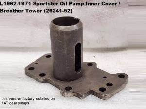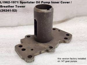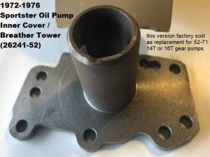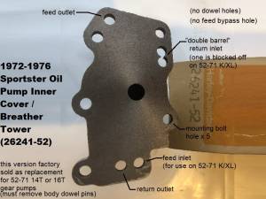 1972-1976 production K and Sportster models use inner (upper) pump oil pump cover (26241-52).