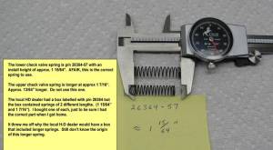 The 1957 pump has the same pump body, 16T gears, covers and breather gear with a new check ball spring and oil switch nipple.