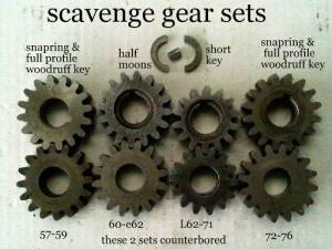 • Scavenge drive gear is locked in with a standard woodruff key (26347-15).