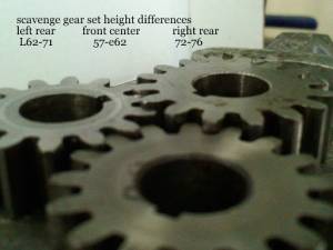 The scavenge drive gear is counter-bored for the split washer (half moons).