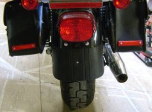 The inner view shows the piece of aluminum bar stock bent to the shape of the inside of the rear fender.