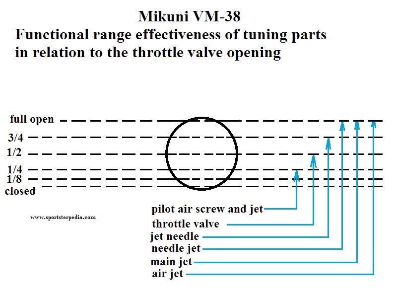 Adjusting the mixture ratio during this stage is made by the pilot jet and the air screw, in the case of a 2 hole type system.