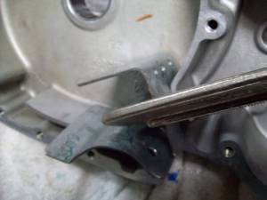 The scraper peels the oil off the flywheels and sends it down under the windage tray.