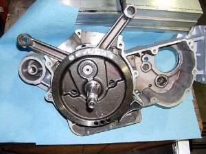 It then goes through a reed valve to the chamber below, where the scavenge inlet resides.