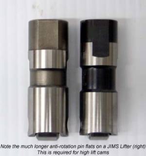 Jims lifters have longer flats on the tappets, but roller failure has been reported while using them.