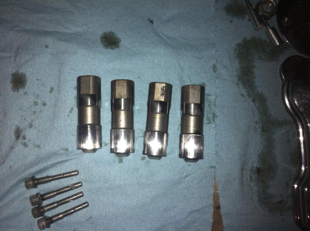 This 2007 Sportster had it's factory stock hydraulic lifters, no travel limiting washers, and non-adjustable pushrods.