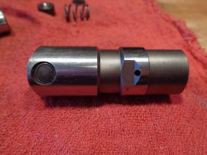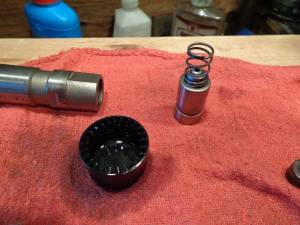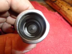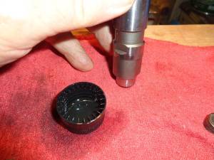 This is the lifter's check valve (some have a plate and spring, others have a ball and spring). The cup pries off with a screwdriver. Careful not to lose the cup or the tiny spring under it. 8) |