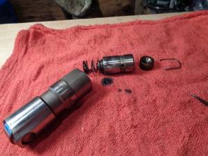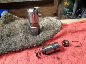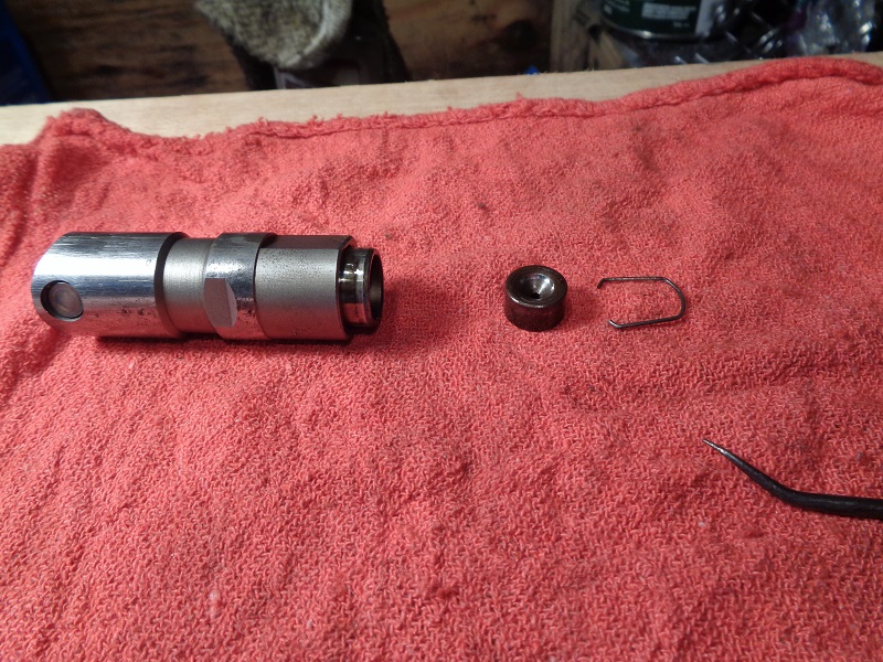 Or, you can use the pick to hook and pull them out. 5) | Remove the pushrod cup | You may can just can pull the plunger from the body with your fingers. If not, remove the plate in the plunger and use the pick. 6) |