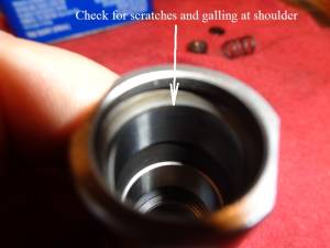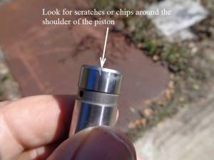 Check for scratching or galling on the inside shoulder of the housing and outside body of the piston. 11) | ||