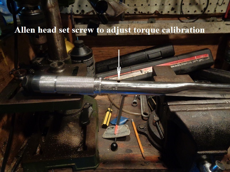 The test wrench below clicked 5/16” down the handle from the set mark.
