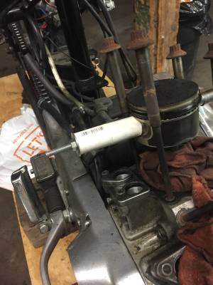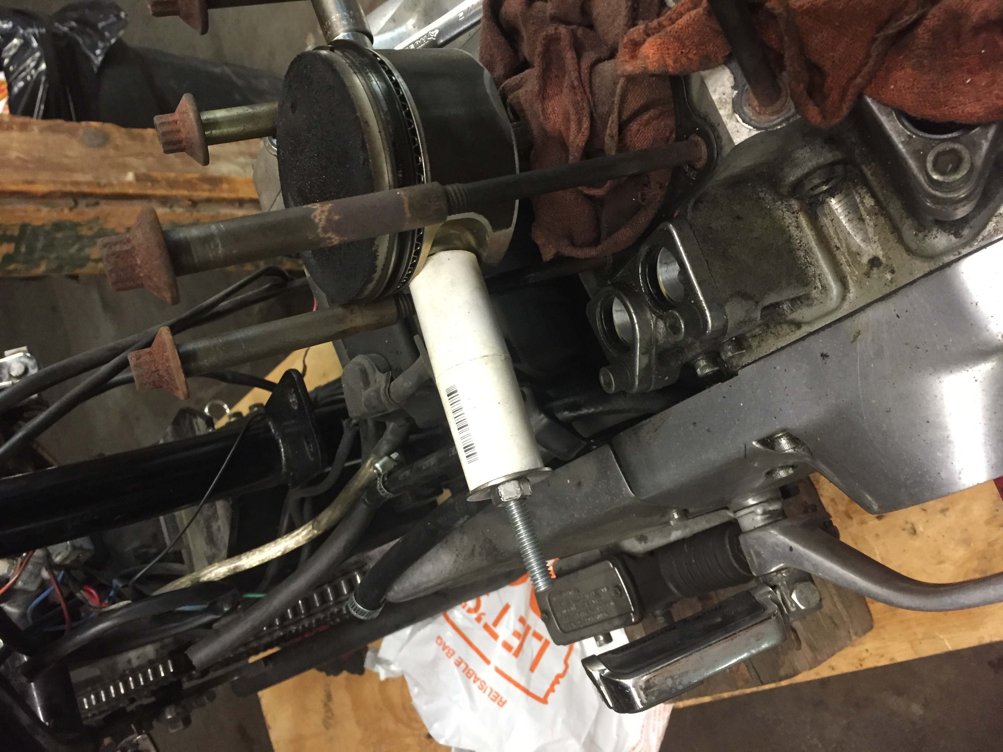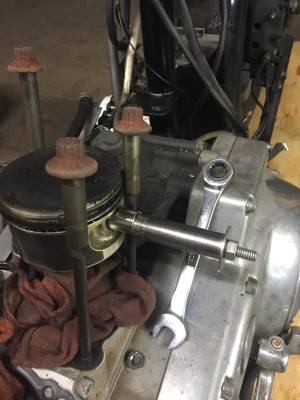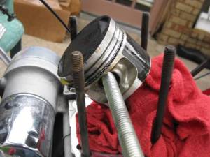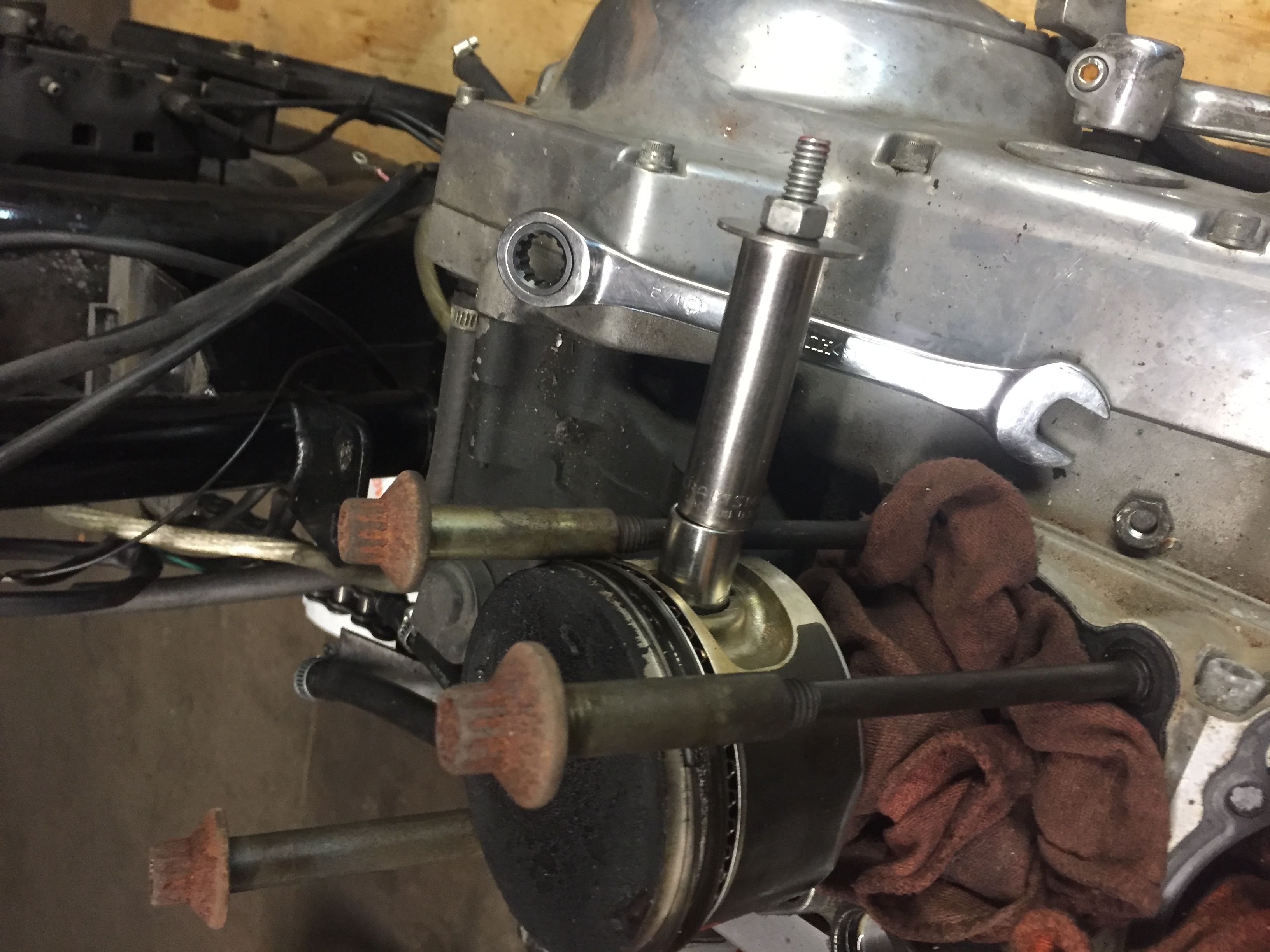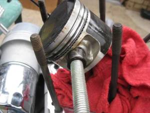 Home made wrist pin removal / installation tool. 5/16“ all thread, 2 fender washers, two nuts, two PVC spacers and two 1/2” sockets. 4)