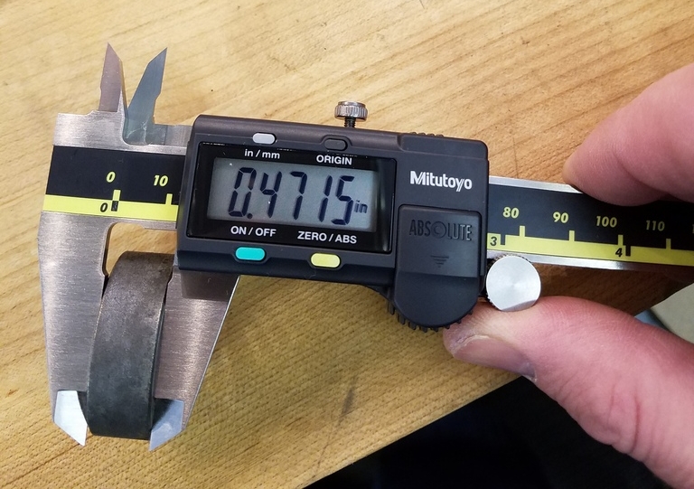 - Open the caliper slightly larger than the piece your measuring, hold the piece against one jaw while pulling the other jaw against your piece. Slightly snug the jaws to the piece and record a reading. Repeat this several times to insure you have a true reading while snapping jaws back to zero before opening them up again.
