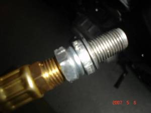 This adapter was made using the same concept of removing the ceramic and brazing a male hose coupling to the end of a spark plug.