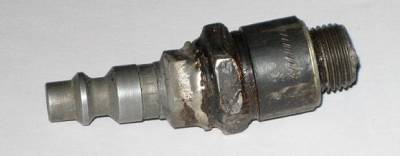 An old spark plug with the ceramic removed can be used to make an adapter for air hose fittings.